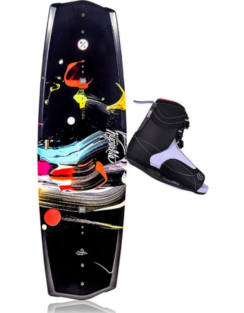 The 2025 Hyperlite Eden w/ Jinx Wakeboard Package is designed to inspire confidence and improve performance for beginner riders. The Eden wakeboard’s unique asymmetrical design helps make carving easier by balancing the toe and heel sides, ensuring smoother transitions and more controlled turns. Its continuous rocker provides a stable, predictable pop off the wake, making progression fun and frustration-free. Paired with the comfortable and supportive Jinx Bindings, this package is ideal for female riders who want all-day comfort and easy adjustability. With the open-toe design and dual quick cinch lace zones, the Jinx Bindings provide a secure fit while being flexible enough to accommodate different foot sizes—perfect for sharing with friends.